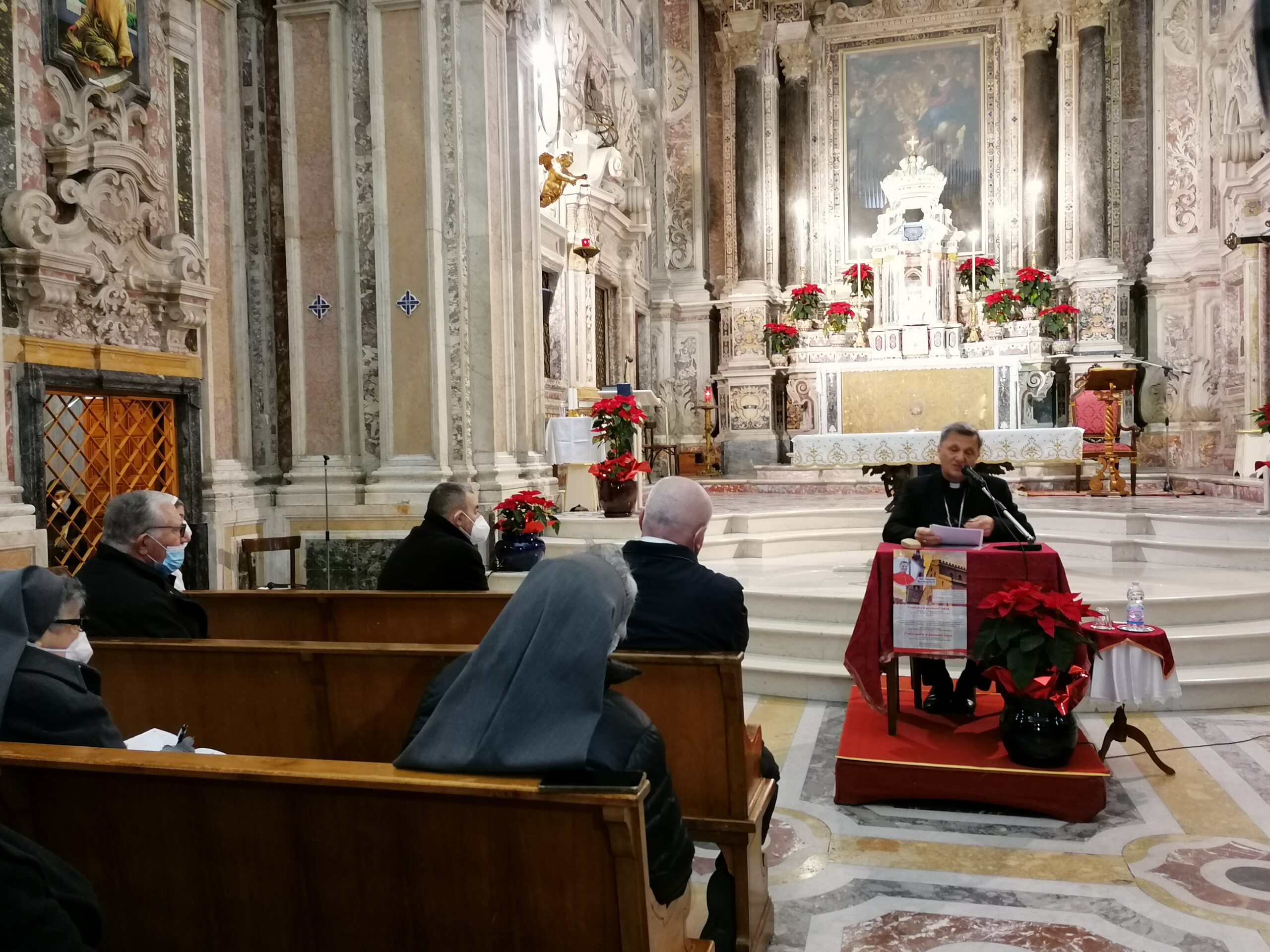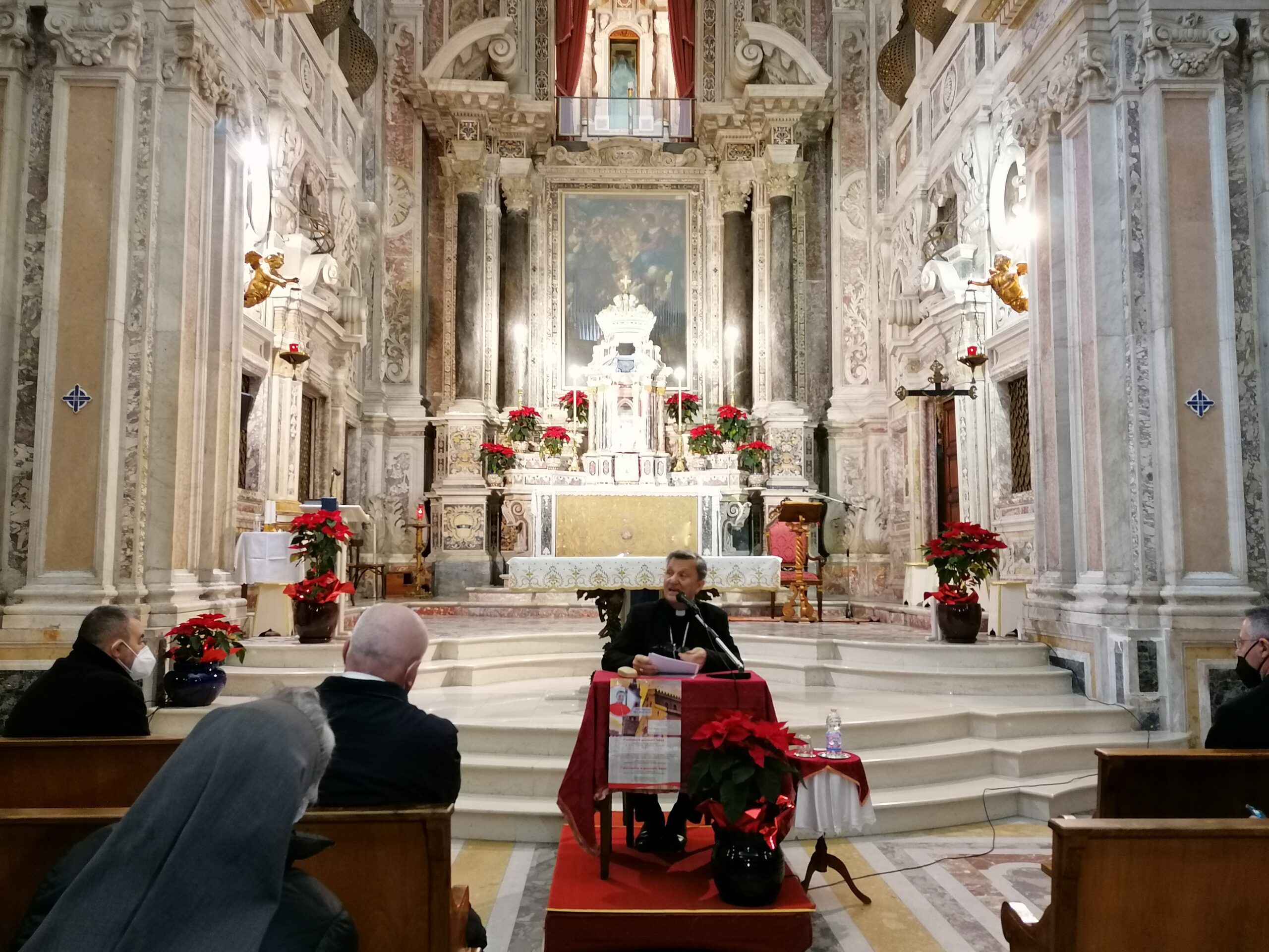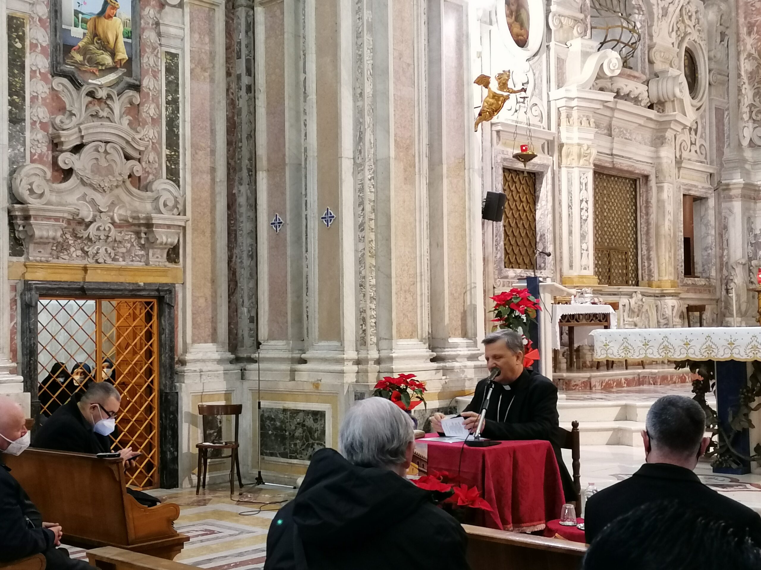 Dopo un momento di preghiera di invocazione dello Spirito Santo perché guidi e accompagni la nostra Chiesa e il cammino sinodale, Sua Eccellenza Mons. Giovanni Accolla ha salutato il Cardinale, le religiose e i religiosi presenti, i membri degli Istituti Secolari e dell’Ordo Virgninum intervenuti e, in modo particolare, le monache del monastero che hanno ospitato il momento di riflessione. L’Arcivescovo ha sottolineato come ha fortemente voluto un tale appuntamento e proprio in un luogo caro alla nostra Chiesa: le monache sono la linfa che con la loro preghiera sostengono la comunione ecclesiale e i religiosi e le religiose tutti, con la fedeltà al loro carisma e il loro servizio incarnato nella realtà in cui vivono, sono una ricchezza per questa Chiesa particolare.